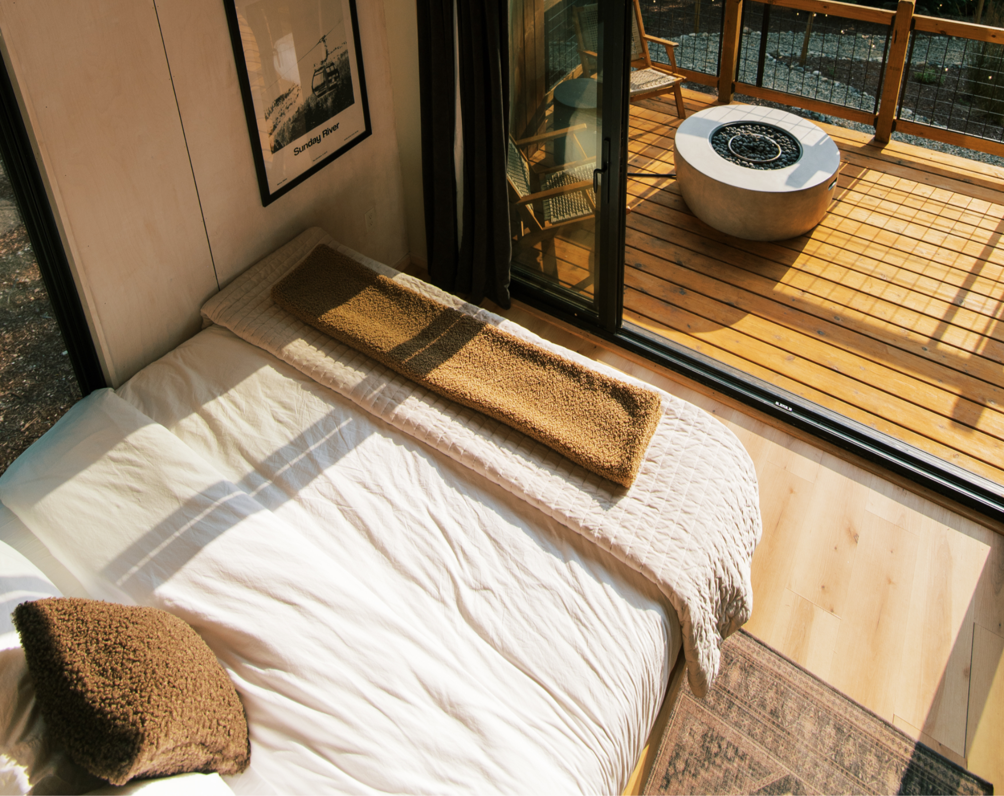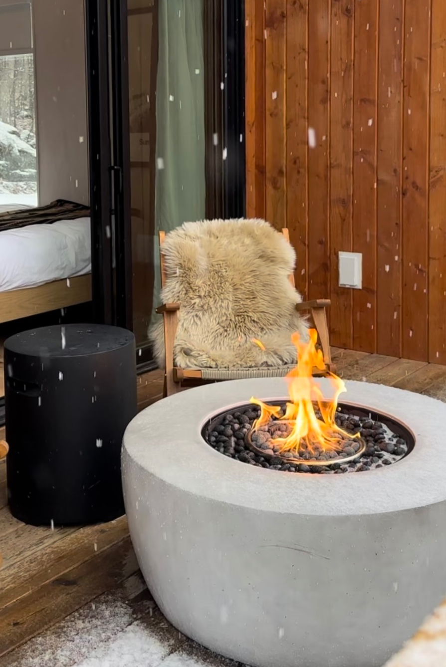 Private Outdoor Deck: Includes a gas fire pit and lounge seating, perfect for relaxing and enjoying the natural surroundings.